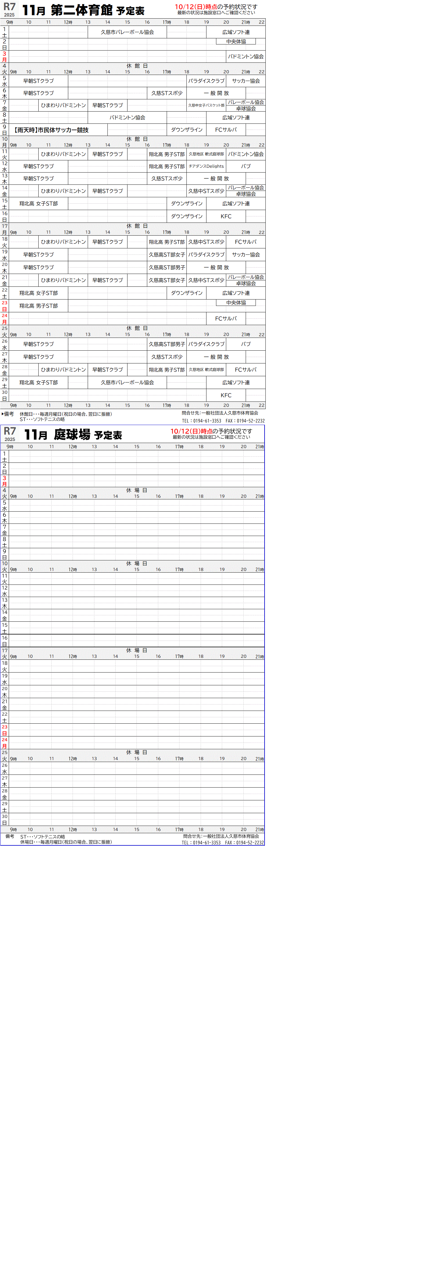 令和7年11月 第二体育館・庭球場 月間予定表 |