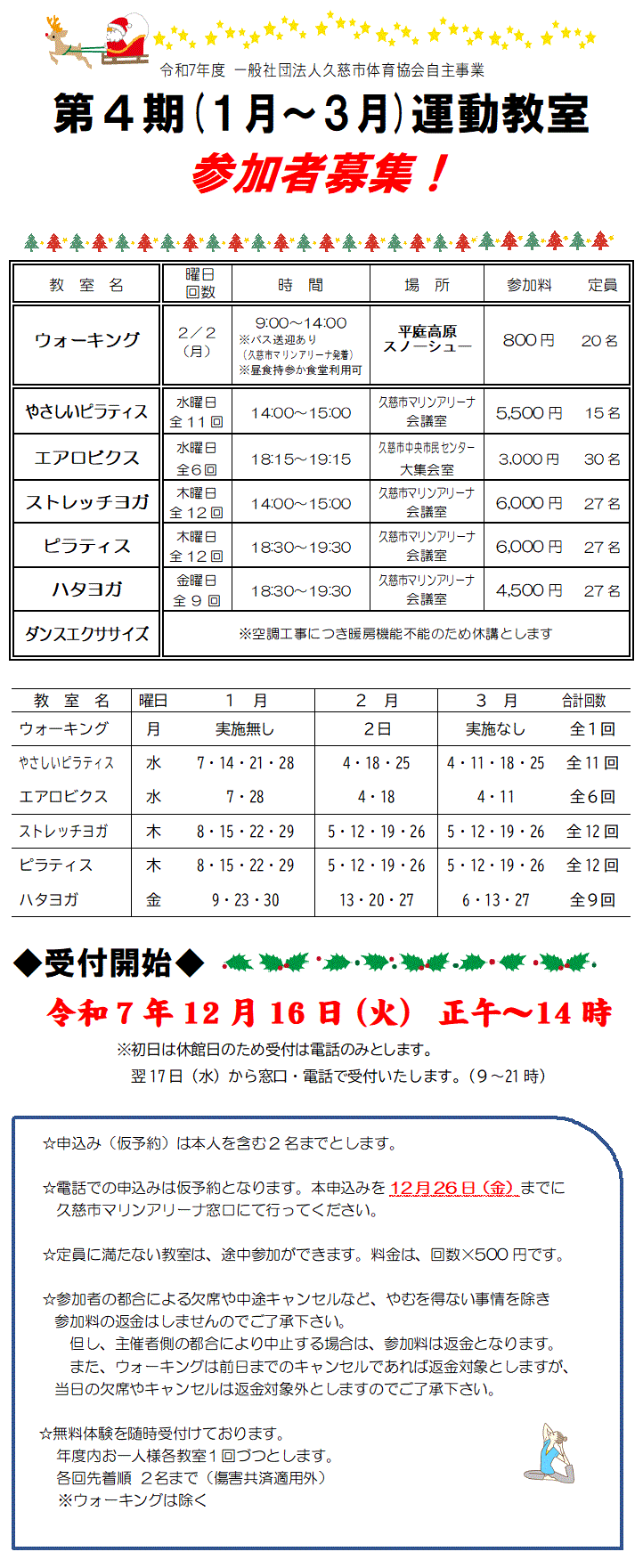 令和7年12月 久慈市マリンアリーナ 月間予定表 |