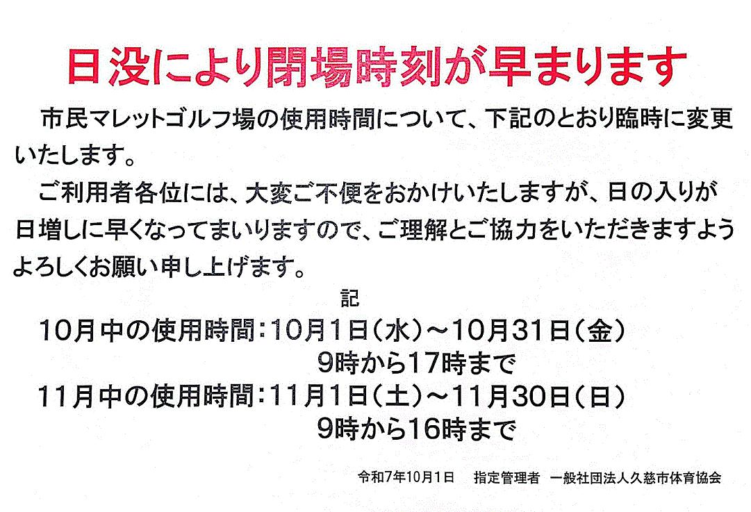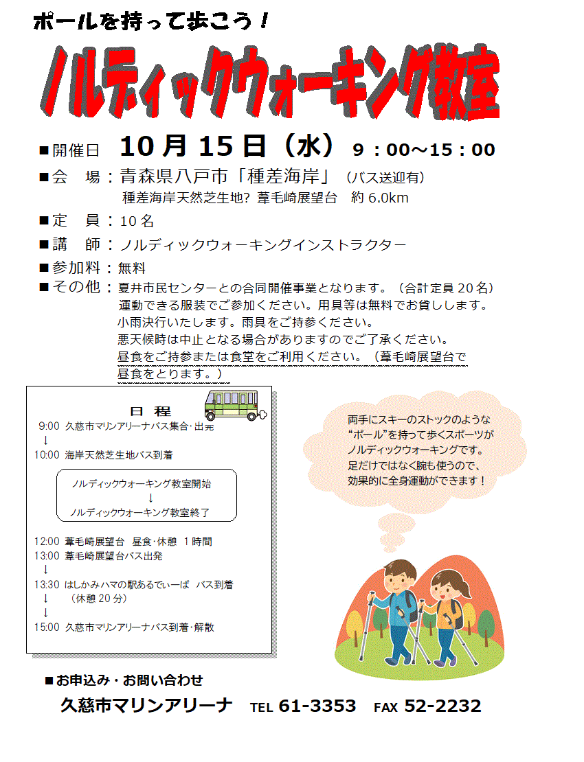 ![]() 利用者の皆様には大変ご不便をおかけしますが、ご理解の程、宜しくお願いいたします。 お問合せ:久慈市マリンアリーナ(久慈市民体育館) TEL 0194-61-3353 |